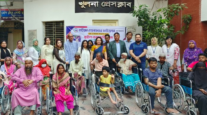 প্রেস বিজ্ঞপ্তি খুলনা প্রেসক্লাব চত্বরে শারীরিক প্রতিবন্ধীদের মাঝে হুইল চেয়ার বিতরণ করা হয়েছে। মঙ্গলবার দুপুরে খুলনা প্রেসক্লাব চত্বরে নাহিয়ান ওয়েলফেয়ার ফাউন্ডেশন এর উদ্যোগে দুস্থ ও অসহায় মানুষদের মাঝে সহায়তা কার্যক্রমের